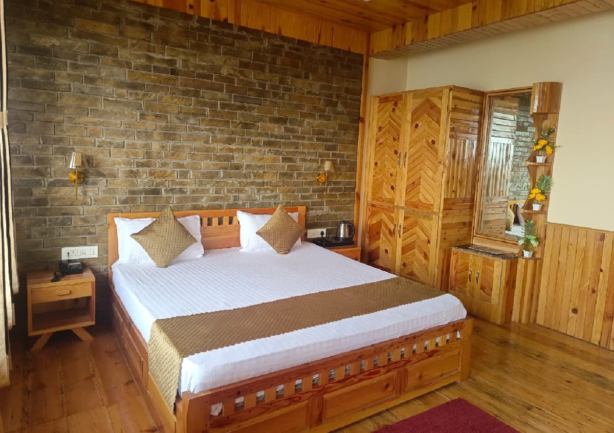 Our Deluxe Room with 1 Double Bed at Kasar Hill Top is designed to offer guests a cozy and inviting retreat amidst the natural splendor of the Himalayas. Featuring comfortable furnishings and a serene ambiance, this room provides the perfect setting for relaxation. Guests can unwind in the comfort of the double bed and enjoy picturesque views of the surrounding mountains from the open balcony. With thoughtful amenities such as complimentary WiFi, our Deluxe Room ensures a seamless and enjoyable stay for those seeking a peaceful getaway in Almora, Uttarakhand.