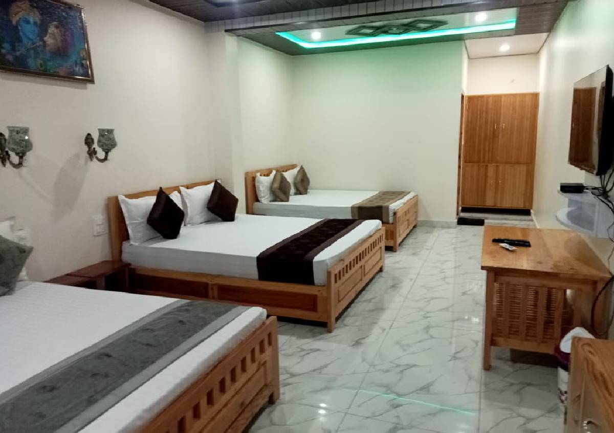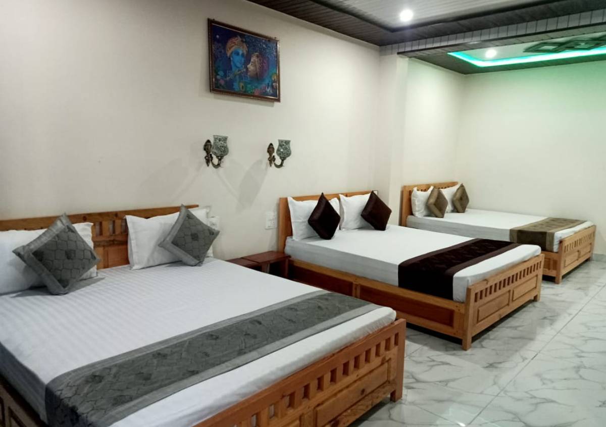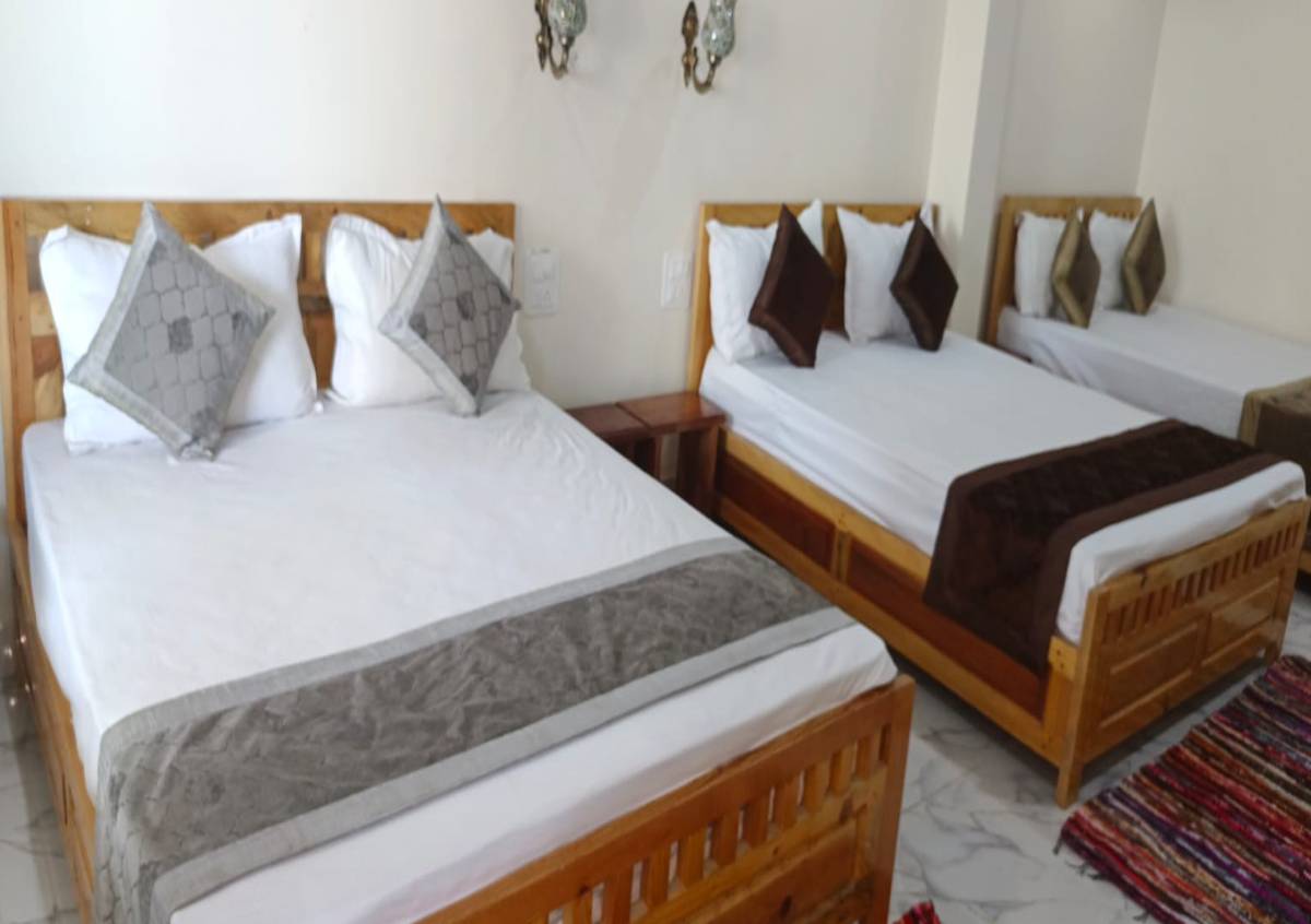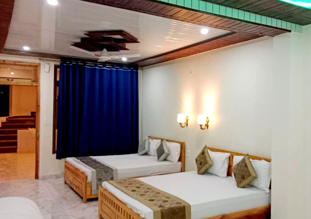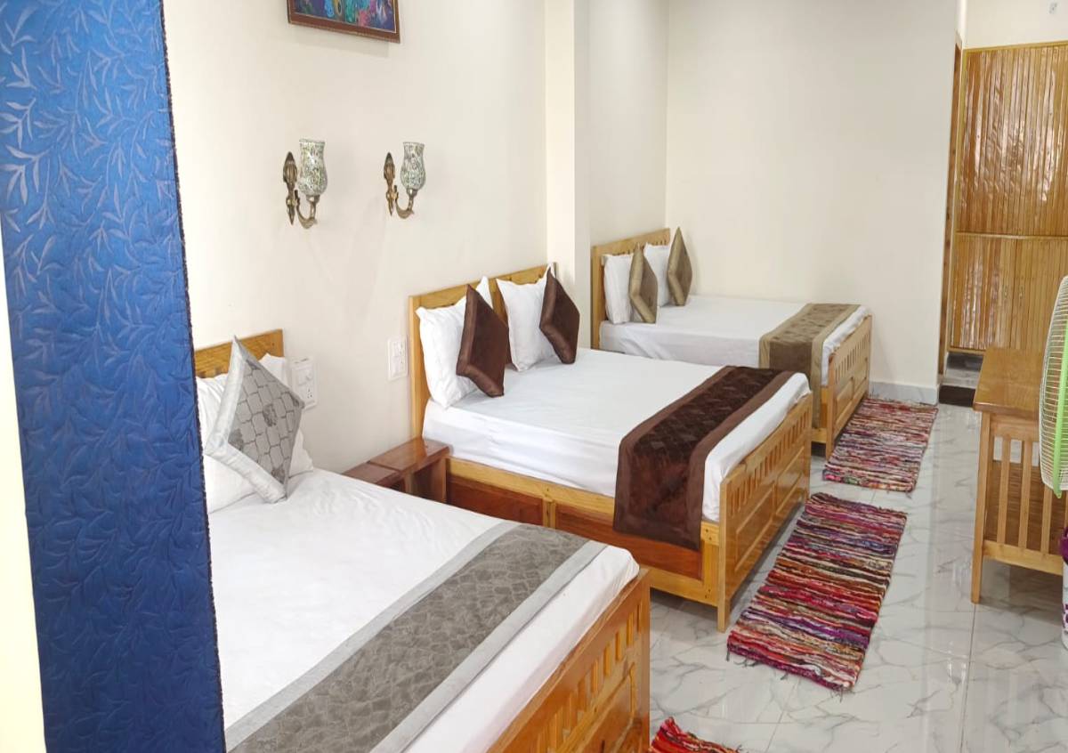 The Family Room with Three Double Beds at Kasar Hill Top is perfect for larger families or groups, providing spacious accommodation and breathtaking views of the Himalayas. Featuring three comfortable double beds, the room ensures a restful stay for all guests. The open balcony invites you to enjoy the serene mountain vistas, while thoughtful amenities add to the comfort and convenience. Whether relaxing after a day of exploring or enjoying family time, this room offers the ideal setting for creating lasting memories in a peaceful natural environment.