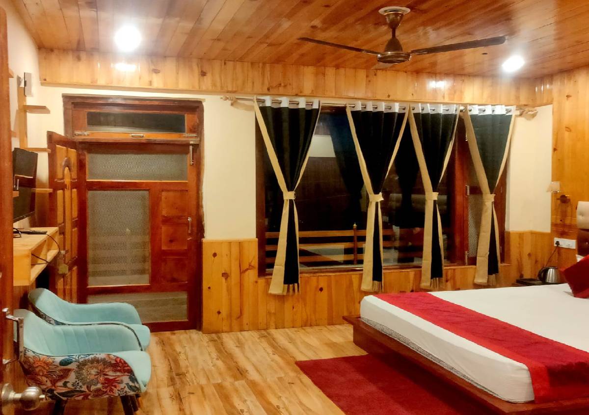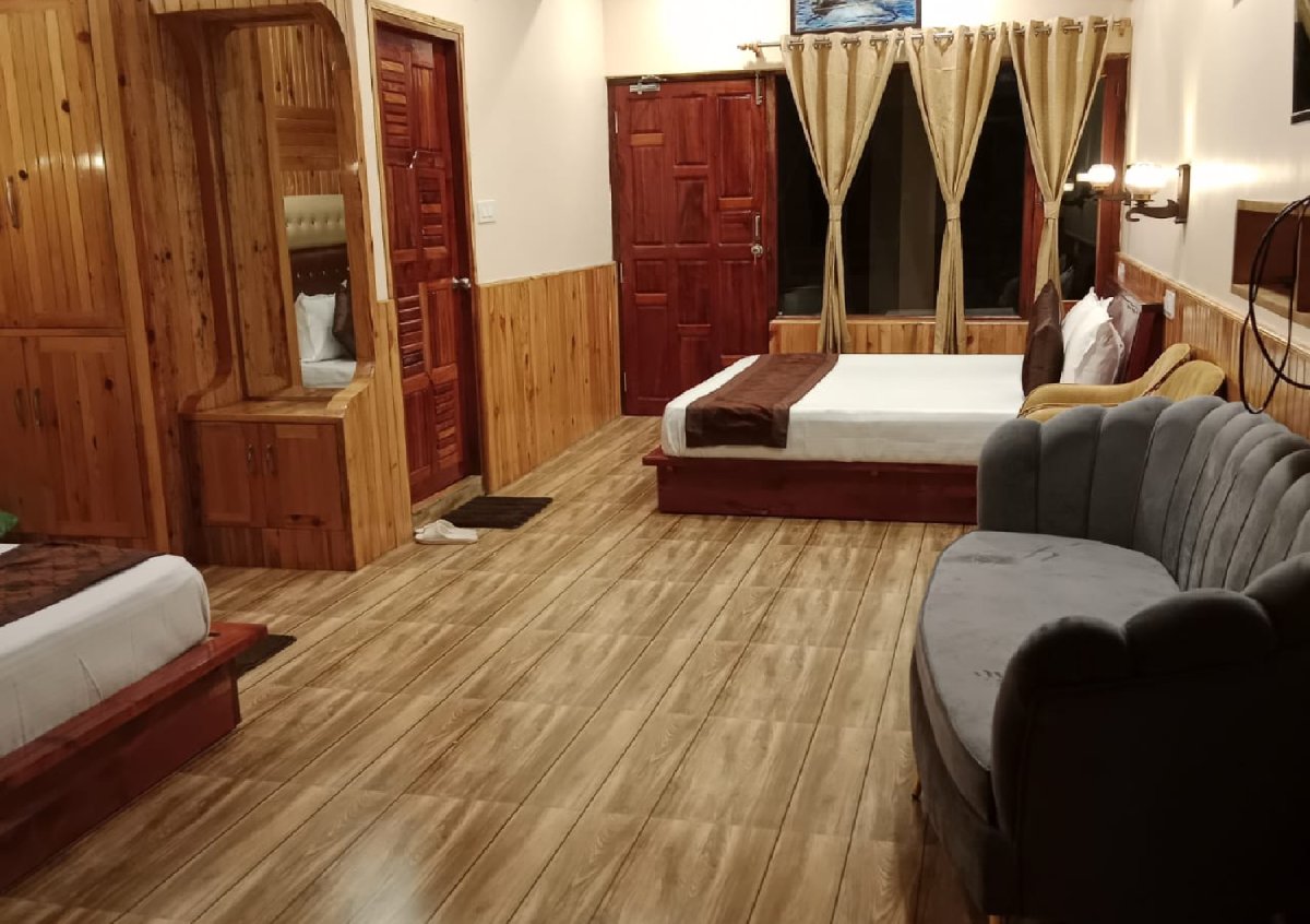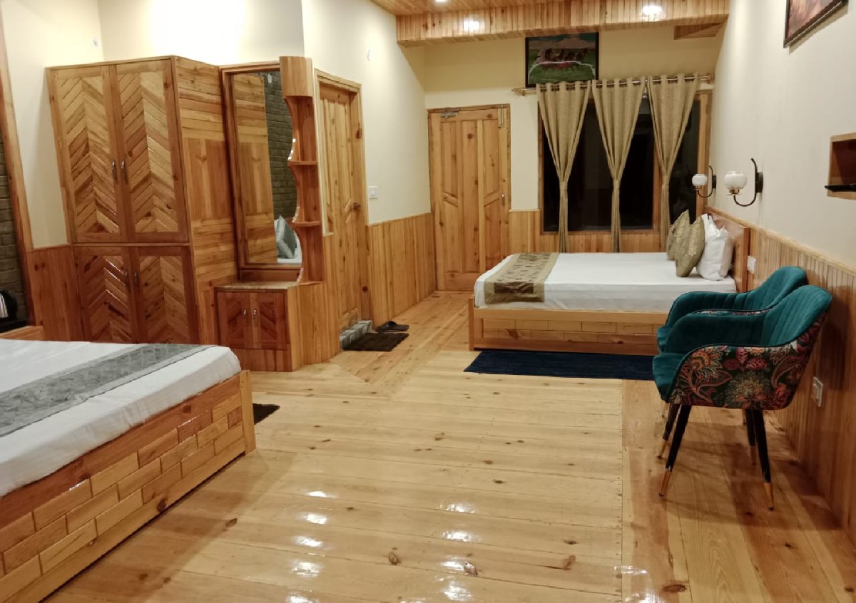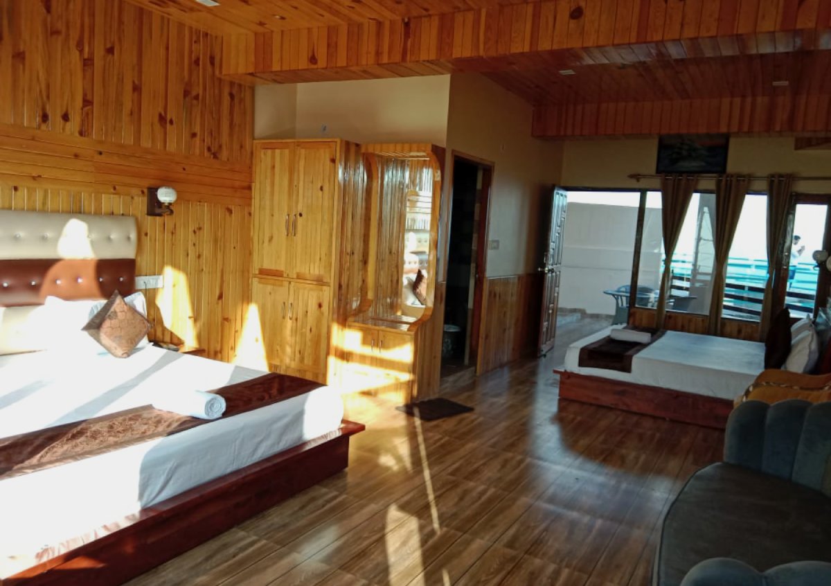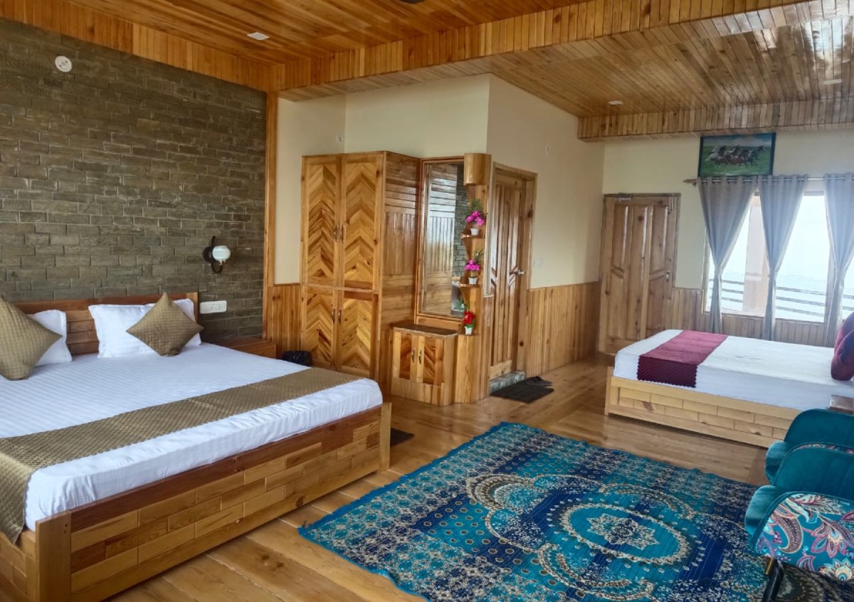 Our Family Room with 2 Double Beds at Kasar Hill Top is an ideal choice for families or small groups seeking comfort and convenience amidst the stunning landscapes of the Himalayas. Spacious and well-appointed, this room offers ample space for relaxation and bonding moments. Guests can enjoy the coziness of two double beds, ensuring a restful night's sleep, and admire panoramic views of the mountains from the open balcony. With thoughtful amenities and attentive service, our Family Room provides a welcoming retreat where cherished memories are made against the backdrop of nature's grandeur.